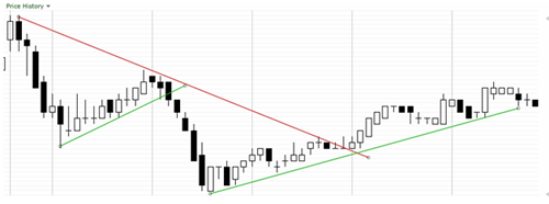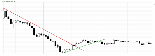 In general, if a trendline is steeper than a 45 degree angle, you should treat it with suspicion (although the steepness of your trendline depends on how your chart is setup or how many candles per chart you allow). As well, you often need to ignore the first 5 or 10 minutes of volatile trading since this is not an accurate representation of the day’s trading. It is often a fast and furious speculative scramble which will normalize later on.
